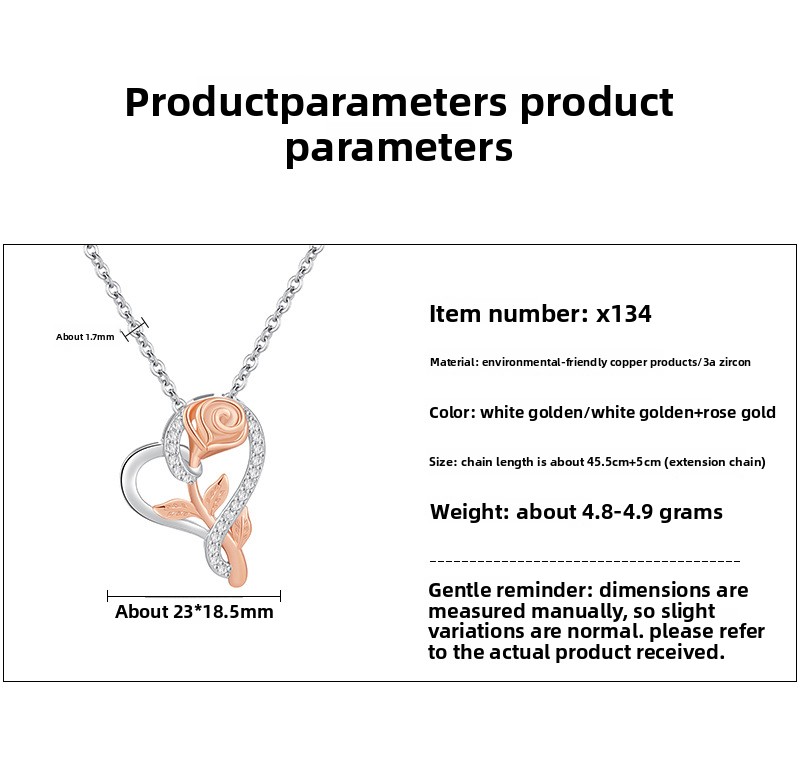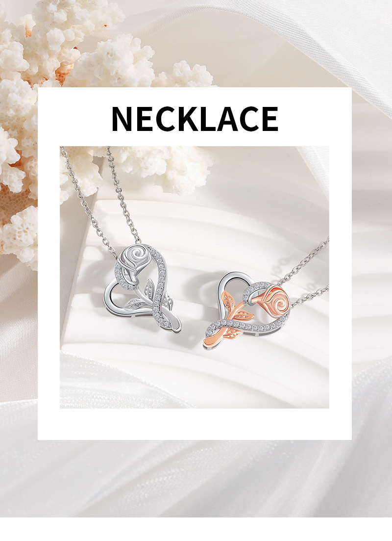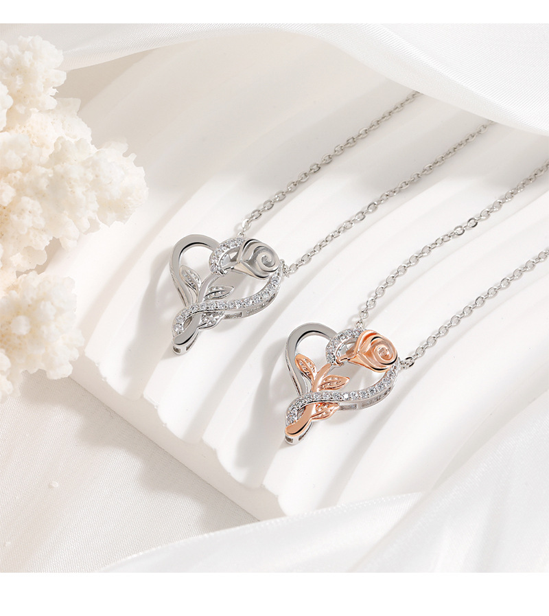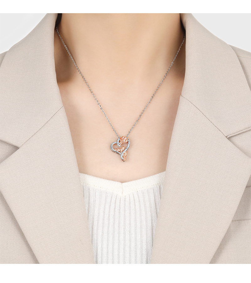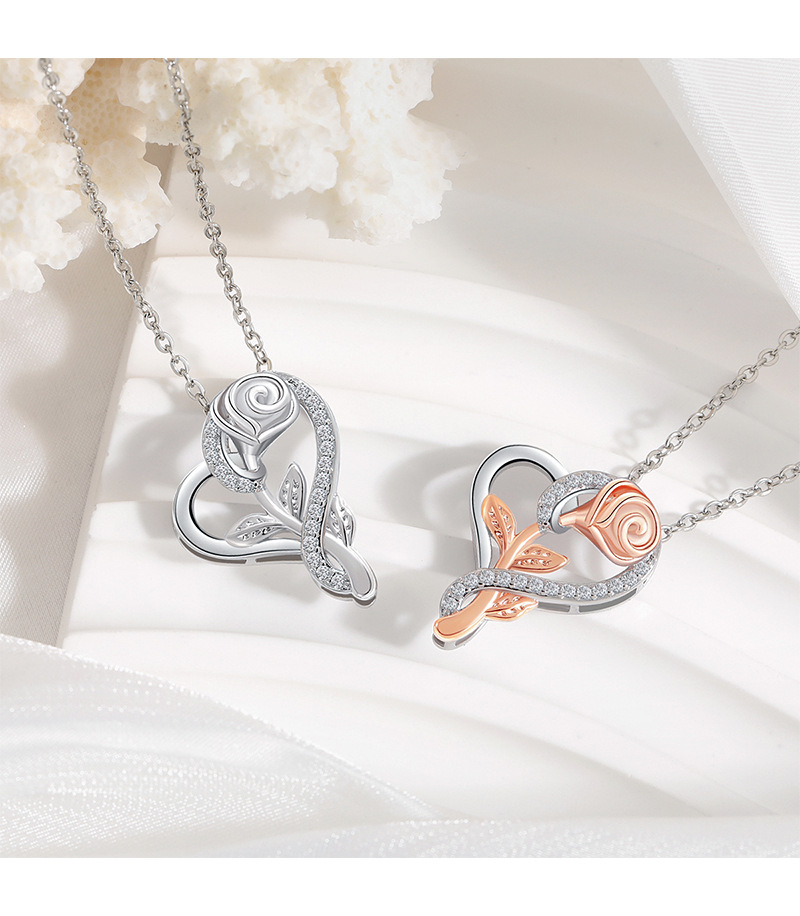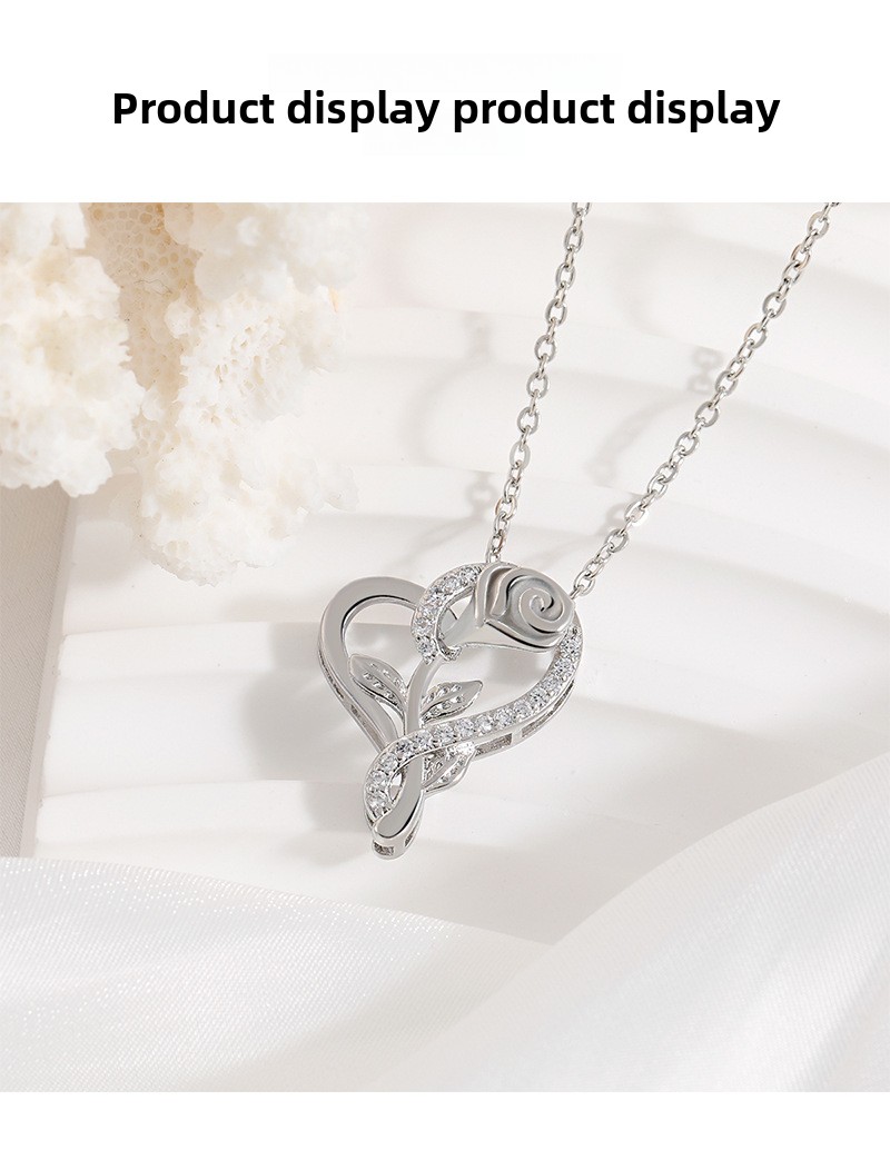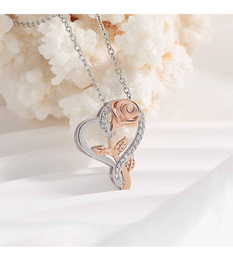 Elegant Design: Heart-shaped rose pendant with intricate winding details for a romantic aesthetic.